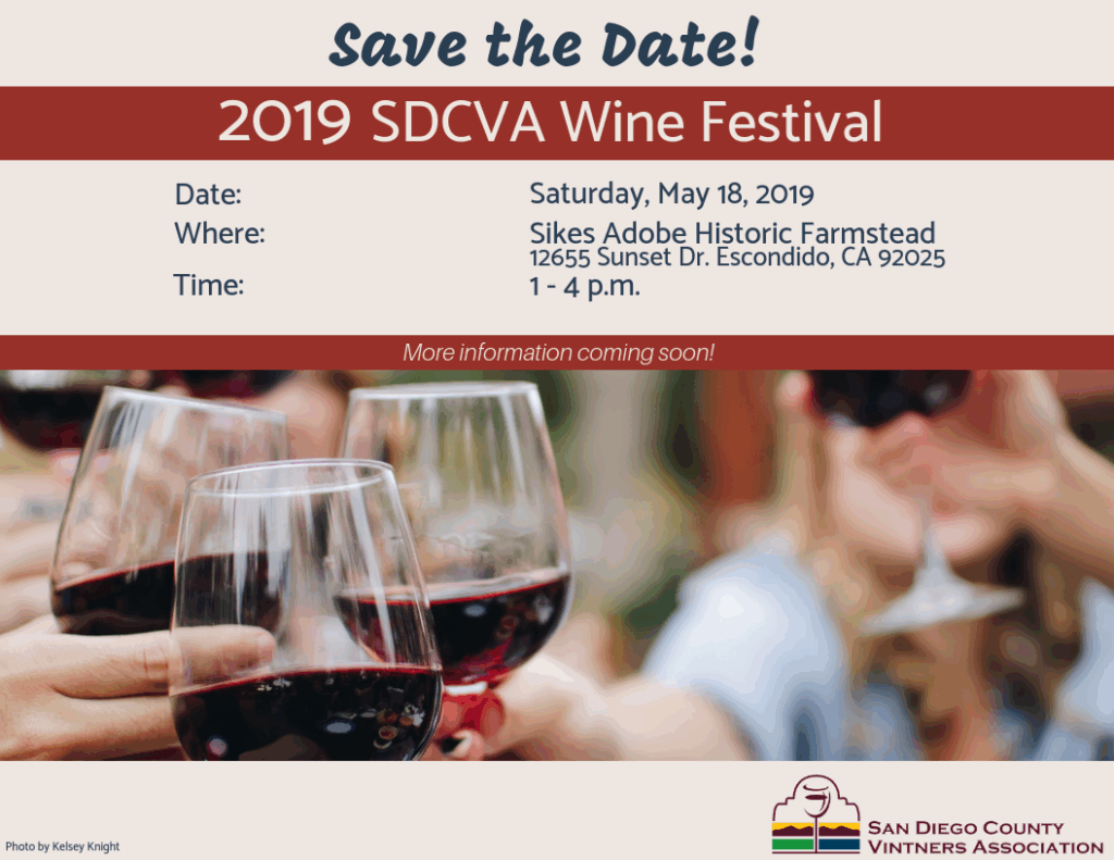 Mark Your Calendars for the 2019 San Diego County Vintners Association Wine Festival, May 18, 2019